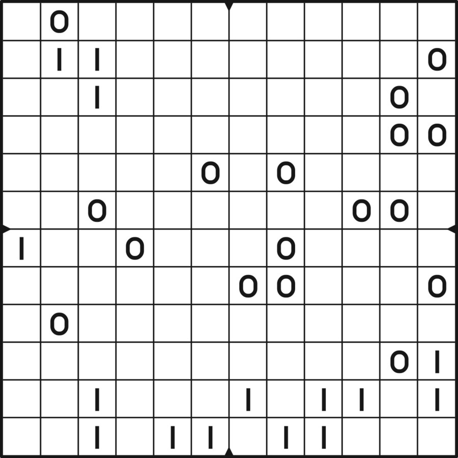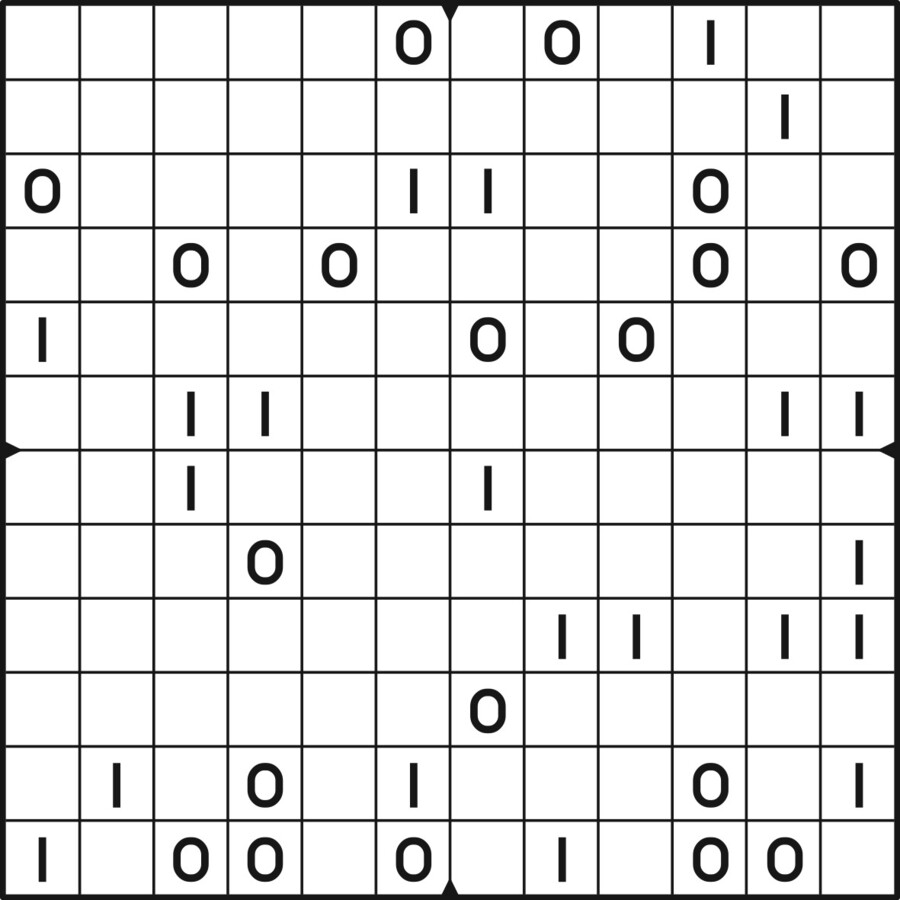 A daily binairo puzzle! Solve each puzzle with only 0's and 1's. Remember: No more than two the same numbers may be placed directly next to or below each other. Every row and every column must contain as many zeroes as ones. The combination of zeroes and ones in every row must be unique, as does the combination in each column.